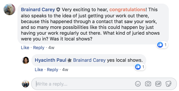 This is what I love about the group, by the way… artists supporting each other, celebrating together, and generously taking you behind-the-scenes to walk you through exactly what they did so you know what really works in the Art Market today.
