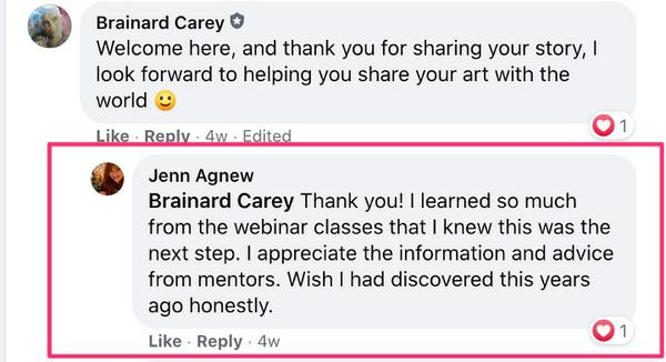 To help you with this, I’m teaching a free masterclass on the 21st of September at 1:00 PM on the exact process these students have used to book multiple virtual studio visits per month, leading to solo shows and sales of their work - even during the toughest months of the pandemic.