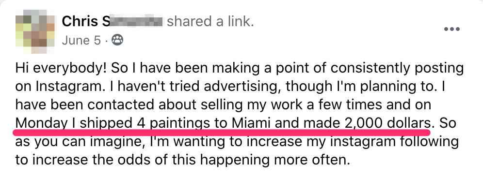 Artist case study: $2000 in Instagram sales in one day